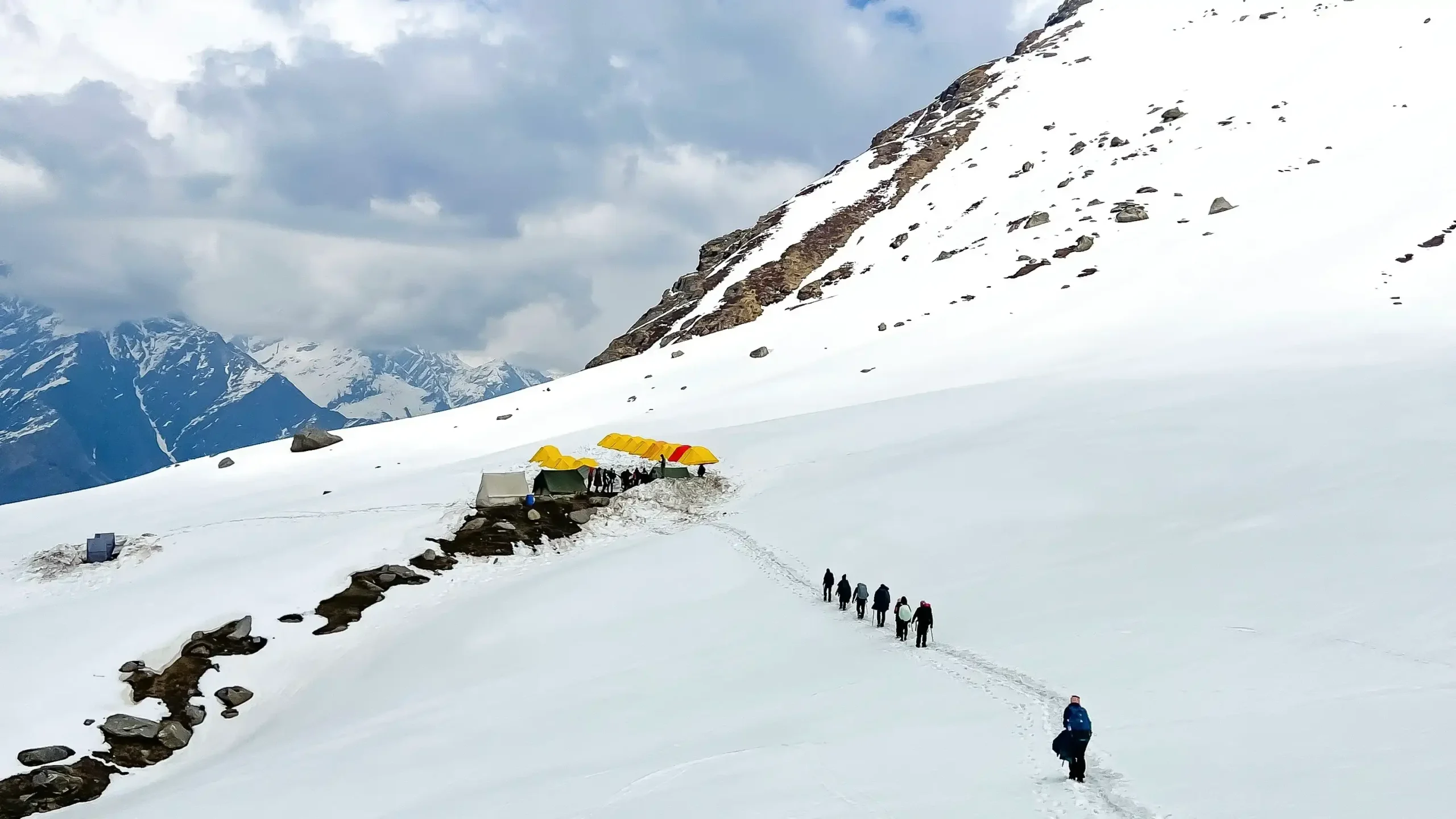 Today’s trek takes you closer to the Sar Pass summit. The trail becomes steeper and offers stunning views of snow-covered mountains. Nagaru is one of the most scenic campsites of the trek, located amidst alpine meadows and snowy slopes. Rest well here as the next day is the summit crossing.